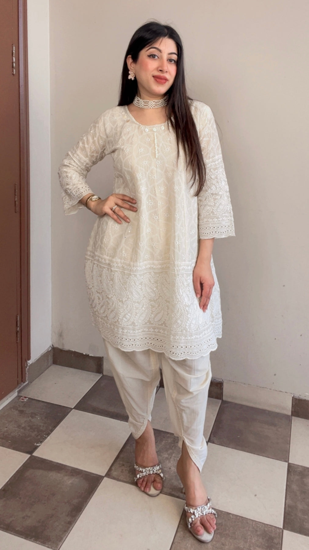 "ASH"-COTTON SCHIFFLI TULIP PANTS CO-ORD WITH POTLI BAG